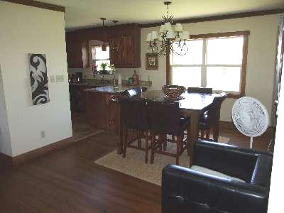 Looking into kitchen and dining area